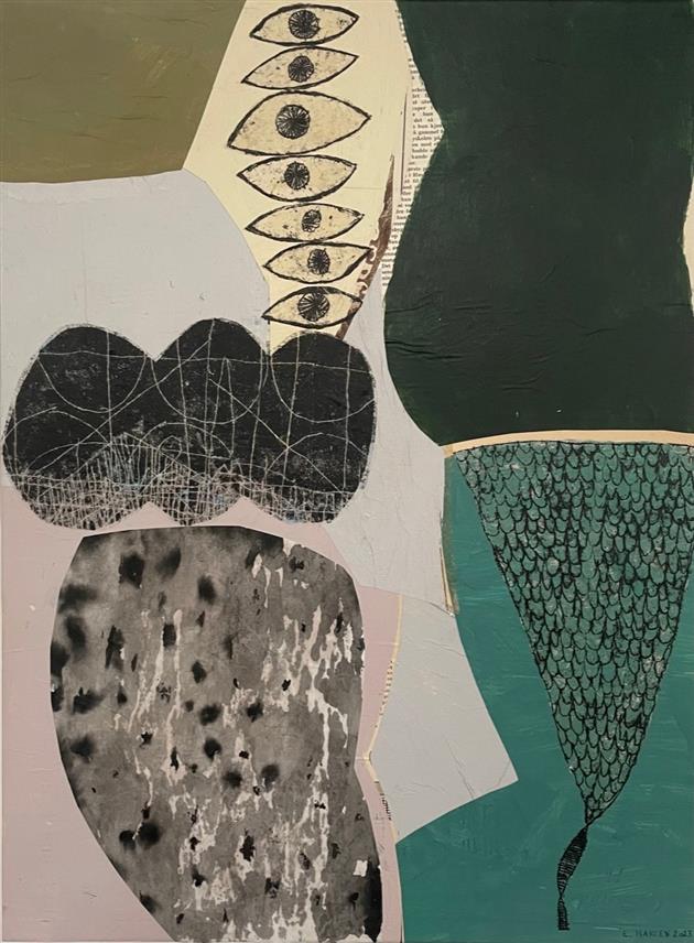 I am constantly trying to expand my art. There are so many ways to work and evolve. I am peeling away and simplifying the collages. I am searching for what I do not know until it comes together on the canvas. The work has its own narrative, glimpses of stories, history, and memories, but ultimately is about form, space and abstraction. It is also about a place where intuitive becomes one with the experience from a lifetime as a working artist.