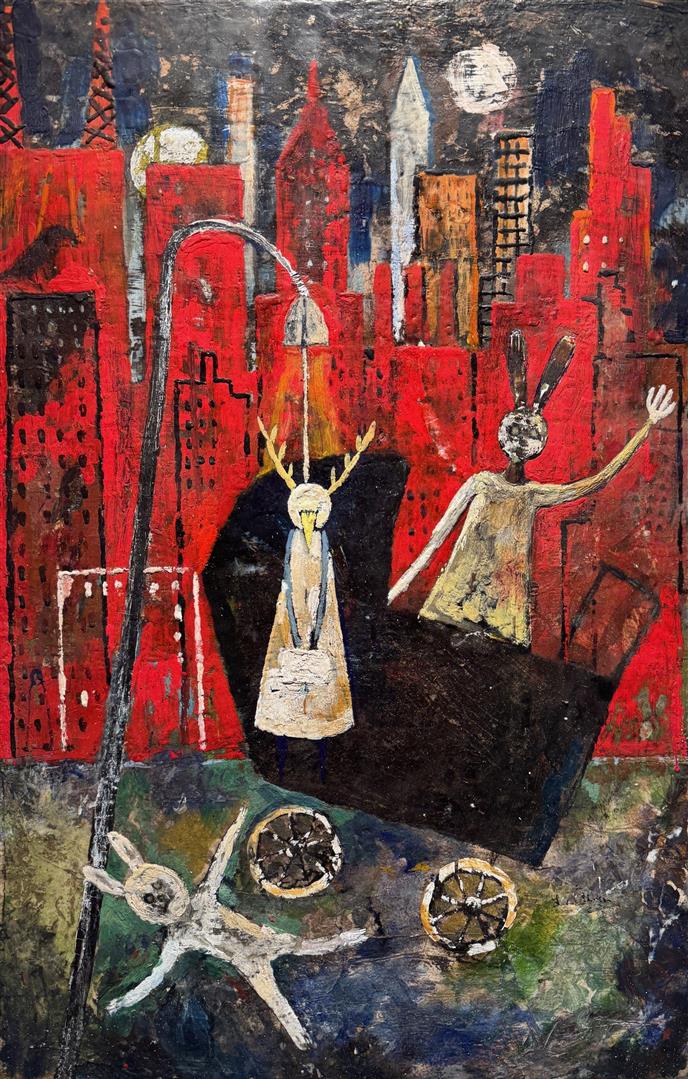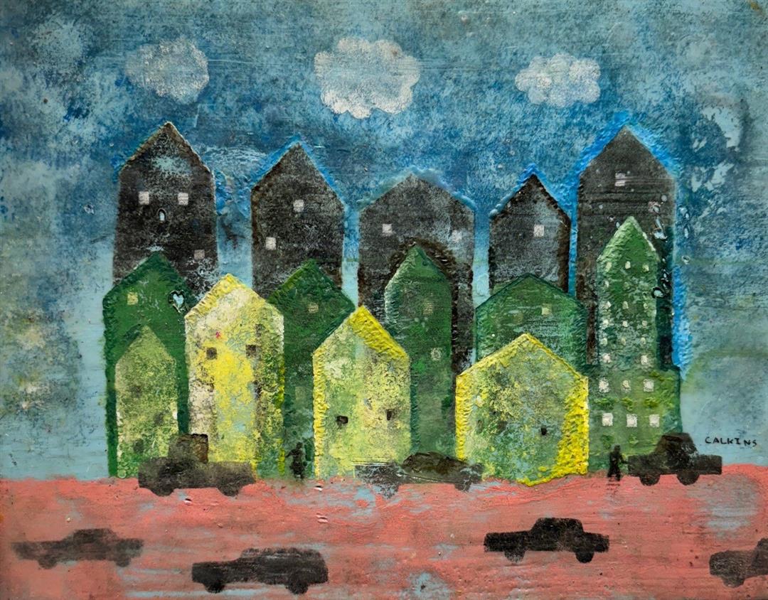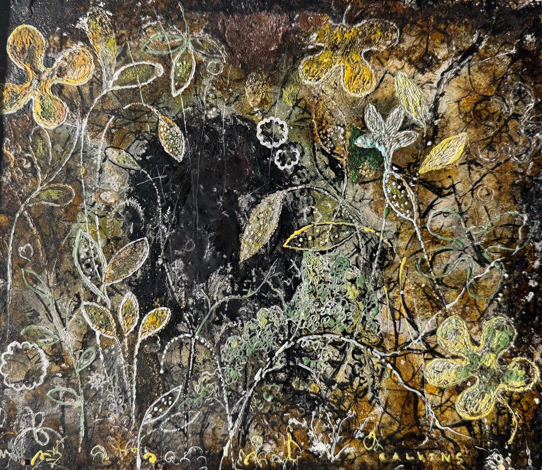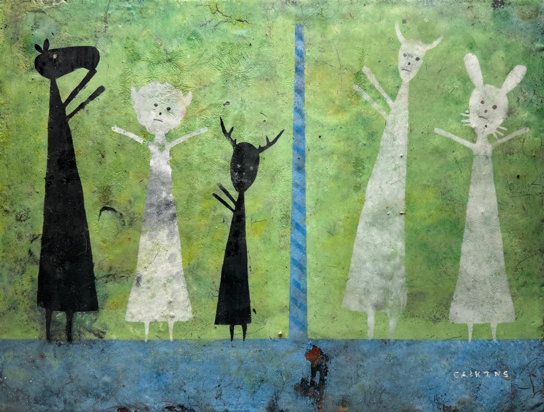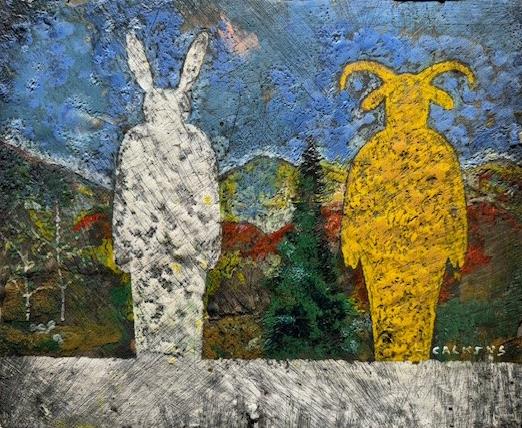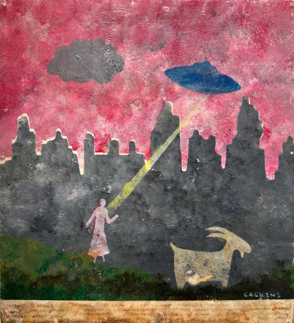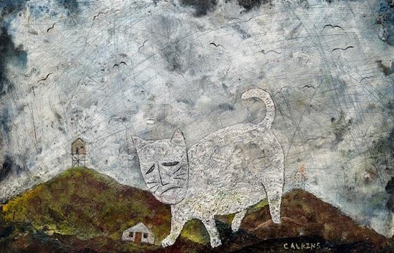 Larry works with simple materials and objects that present some kind of history: rusted metal, found cloth, or scraps of wood. His typical paint medium is beeswax that he mixes with pigments. Occasionally he carves his brushes from twigs and often, if an object he wants is not readily available, he will create it.