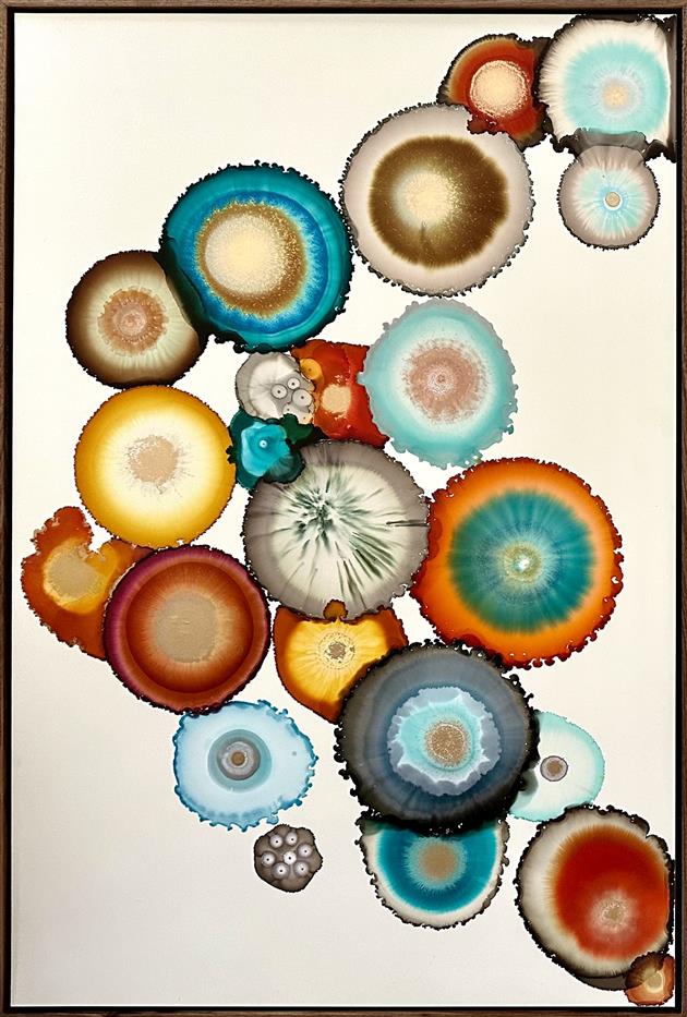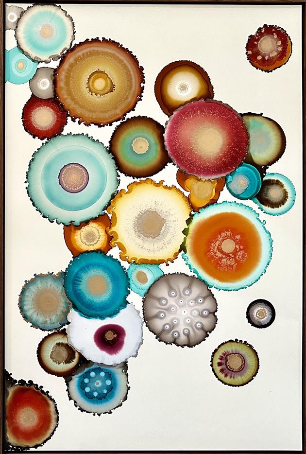 Laura Van Horne is a mixed-media artist who works in encaustic, acrylic, watercolor, ink, resin, paper and textiles. She was born in Winnipeg, Manitoba, Canada and moved to Seattle, WA in 1994. Laura has participated in a number of group and solo art shows over the past 25 years. All I ever wanted to do was create. Growing up in a sports-oriented household presented as quite the challenge. Rarely was there paper in the house so I had to be resourceful in finding my own supplies. Into the woods I went to collect flowers to press and later glue to scraps of wood. I used my aunt’s old nail polishes to paint rocks in my backyard. Nothing was smooth and pretty, all my creations were rough and unusual. I feel this lack of art supplies had a huge hand in making me the artist I am today. I absolutely love mixed media and texture, spending much of my time experimenting with different mediums and surfaces.