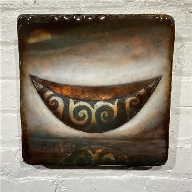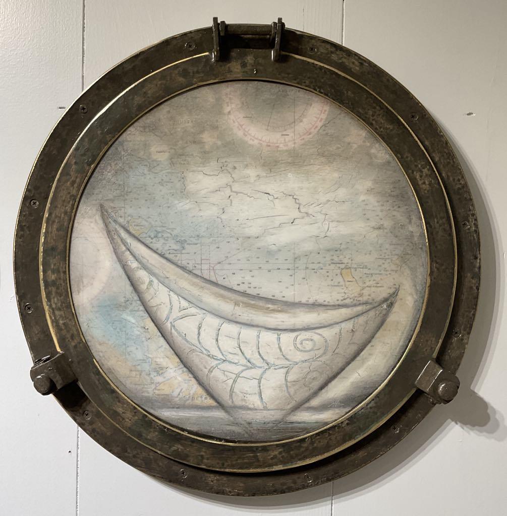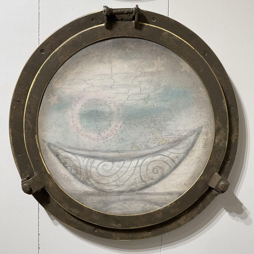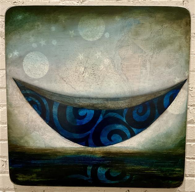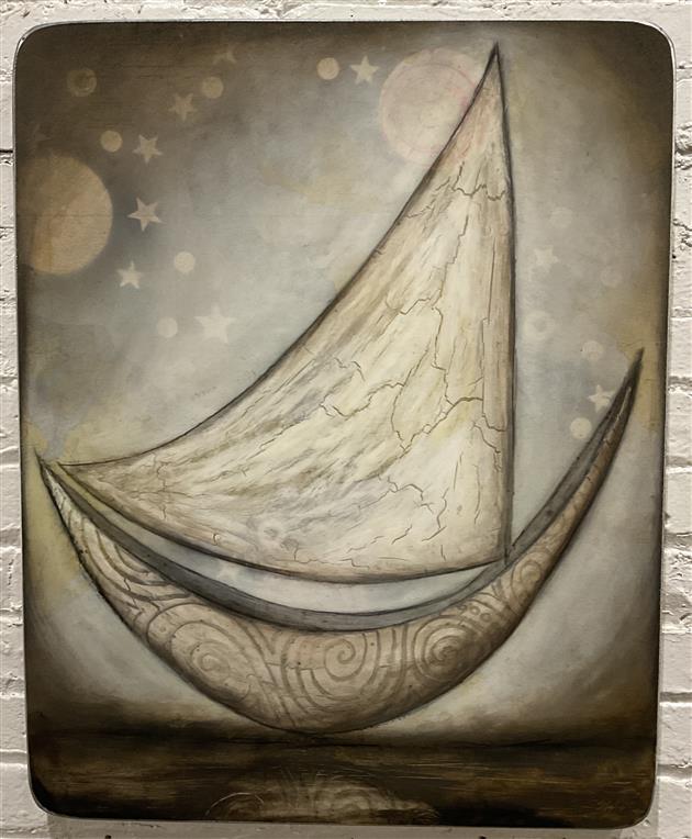 Steve Jensen plays an influential role in the Pacific Northwest, making his mark on the landscape with monumental public artworks, as well as emotionally charged paintings and sculptures imbued with personal narrative. For Jensen, the boat embodies the concept of passage from place to place, from life to death. Carved calligraphic motifs reflect his close relationship to the water and the refashioning of found elements mirror the aesthetic traditions of his Norwegian forbearers.