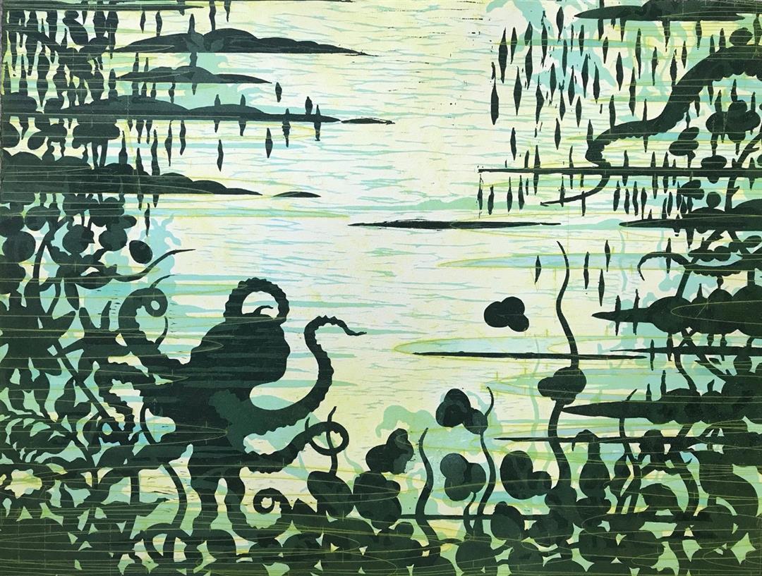 My artistic output spans the mediums of printmaking, painting, diorama relief sculpture, to public art. My work reflects on climate change relating to an evolving landscape due to rising sea levels and warming ocean temperatures. This process has led me to an interest in how scientists are mapping and imaging data of climate change and to ask questions of how maps of our planet will shift in the future.